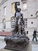 Another noted Manchester work is a 1907 bronze sculpture entitled Adrift, depicting a family clinging to a raft in a stormy sea, its style showing the influence of the New Sculpture movement. It was exhibited at the New Gallery in London and then gifted by the Manchester industrialist and art collector James Gresham to the Manchester Corporation, who used it as the centrepiece of the new ornamental Piccadilly Gardens, laid out c.1930. In 1953 it was replaced by a fountain and relocated. Adrift now stands in front of the Manchester Central Library in St Peter's Square.[8]