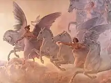 - Triumph of Time,c. 1901,[2] a two-panel mural on the ceiling of the Elliott room of the McKim Building of the Boston Public Library. The mural shows 12 female figures representing the Hours spread among twenty horses representing Christian Centuries. The horses are pulling a chariot carrying a male figure representing Time.[1][3]