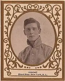 Knight was nineteen when he entered the majors in 1905 with the Philadelphia Athletics, playing for them two and a half years before joining the Boston Americans (1907), New York Highlanders/Yankees (1909–11, 1913), and Washington Senators (1912). Knight was in the Athletics 1905 Opening Day as a replacement for incumbent shortstop Monte Cross, out until mid-season with a broken hand. He responded hitting .400 in June, but faded after that and finished the season at .203.