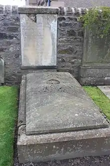 He is buried against the southern wall of Greyfriars Burial Ground in Perth, close to the southern pedestrian gate. The stone was erected by Robert Mylne and has been restored many times.