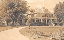 The Oughton House, known as The Lodge, is a 20 room Victorian mansion located on the south side of the Livingston County village of Dwight, USA. The original building was constructed in 1891 on a different site and moved to the grounds of the Keeley Estate in 1894 to act as a clubhouse for the Keeley Club, an organization of Keeley Institute graduates that first met in the original building on the property and then in the Oughton House, until 1894.[3] At the time of the move the house was known as the Scott House. It was originally constructed as a boarding house for W.T. Scott. In April 1894 the house underwent an elaborate remodeling project which transformed the clubhouse into a home for John R. Oughton. Oughton was one of the founders of the Keeley Institute.[3] At the time of the structure's renovation, Mrs. Oughton named the house "the Manse."[3]