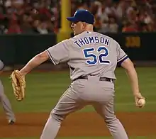 John Carl Thomson (born October 1, 1973) is an American former starting pitcher who last played for the Kansas City Royals of Major League Baseball. He is a 1991 graduate of Sulphur High School in Sulphur, Louisiana. He went undrafted out of high school and pitched for McNeese State University (Lake Charles, Louisiana) in 1992 and Blinn Junior College (Brenham, Texas) in 1993. The Colorado Rockies selected him in the seventh round of the June 1993 amateur draft and he made his major league debut for the Rockies on May 11, 1997.[1] 2007 is his eleventh major league season. In addition to the Rockies, he has played for the New York Mets, Texas Rangers, Atlanta Braves and Kansas City Royals and also pitched in the Toronto Blue Jays organization from April through June 2007. He currently resides in his hometown of Sulphur, LA.
