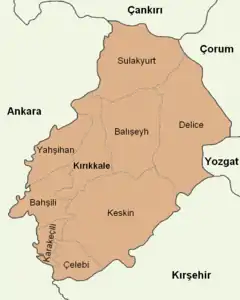 Kırıkkale province is divided into 9 districts (capital district in bold):[4][5]