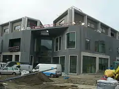 The shopping centre and the 40 apartments were constructed on a site, situated in a downtown quarter, which formerly housed a primary school, a high school (Onze-Lieve-Vrouw van Bijstand), an elderly home and a convent.