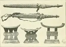 Kalanga knives with wooden sheaths; wooden pillows. From a 1910 ethnographical work.