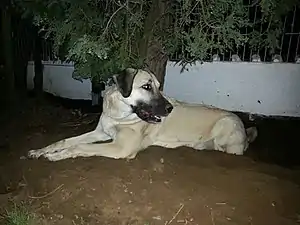 The Kangal Shepherd Dog (Turkish: Kangal Çoban Köpeği) is a traditional Turkish breed of large livestock guardian dog.[2] The breed name derives from that of the town and district of Kangal in Sivas Province, the easternmost province of the Central Anatolia Region in central Turkey. The coat colour varies from pale fawn to wolf grey, always with a black mask.