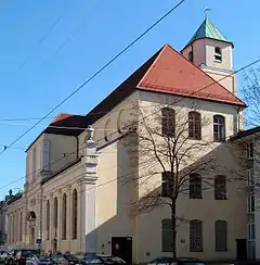 The Karmelitenkirche or Carmelite Church of St. Nicholas is a Baroque former church at Karmeliterstraße in Munich, Germany. It was built in 1654 to plans by Hans Konrad Asper by Marx Schinnagl as a replacement for the old Carmelite Church.[1] The monastery church was consecrated in 1660.[2] Today it is used as an oratory for the library and reading room of the Metropolitan Chapter of Munich. It is also used for the Archives of the Archdiocese of Munich and Freising.
