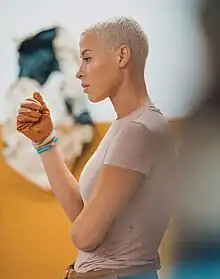 Kennedy Yanko (born October 21, 1988, in St. Louis, Missouri)[1][2] is an American sculptor, painter and installation artist known for working with "paint skins" and found metal.[3] Yanko sources discarded objects and other material from salvage yards and manipulates or modifies their form, shape, or structure into her vision. Her abstract work draws upon surrealism, abstract expressionism and physical austerities and her background in performance art.[3][4]