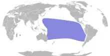 It breeds in the Pacific ocean from Lord Howe Island to the Juan Fernández Islands. Rarely is the Kermadec petrel recorded west of Lord Howe Island, where it maintains a small colony of less than 100 individuals on Balls Pyramid. In the past it also bred in some numbers on the main islands, however, this is seen as unlikely today. Not much is known of the bird's breeding pattern at Balls Pyramid, however, it usually nests there in late summer. This coincides with the breeding patterns of other birds in the Kermadec Islands. The larger of its two subspecies, P. n. juana, also breeds on Round Island, off Mauritius, where it may sometimes hybridise with the Trindade petrel. The species is a vagrant in Hawaii, Australia and New Zealand. Reported vagrants in Pennsylvania and North Carolina in the United States and also in the United Kingdom are thought to be dubious.[3]