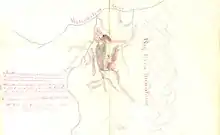 The lodges with Kill Eagle successfully killed buffalo but then inadvertently ended up in the main Indian non-treaty Indian village that had gathered for the annual sundance. They soon found themselves caught up in the Great Sioux War. Kill Eagle was abused when he refused to join in the fight against the army at the Battle of the Rosebud and he also appears to have stayed out of the fighting at the Battle of the Little Bighorn.[1] Kill Eagle and his lodges managed to slip away from the main village and surrendered at the Standing Rock Agency on September 15, 1876. He was interviewed by army officers about the Little Bighorn and his comments were widely reported in the press, one of the first native perspectives of Custer's defeat. He also gave information for one of the earliest maps of the battleground.[3]