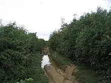 King Lud's Entrenchments is also known as King Lud's Intrenchments[3] or King Lud's Banks.[4] The site has not been excavated and its date is unknown and has been thought of as a Saxon boundary ditch but aerial photographic work has suggested that it may be part of an extensive prehistoric boundary system extending from Northamptonshire to the Humber and termed `the Jurassic spine'.[5]