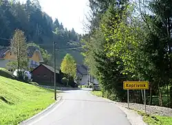 Koprivnik (pronounced [kɔˈpɾíːwnik]; German: Kopriunik[2]) is a small dispersed settlement northwest of Žiri in the Upper Carniola region of Slovenia.[3] It consists of isolated farms in the hills above the right bank of Sovodenjščica Creek (a.k.a. Hobovščica Creek), extending from the Javorščica Gorge to the hills above Fužine. The territory of the settlement ranges between 515 and 810 m in elevation.[4]