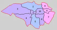 colored area=original extent in Meiji period; green=present area plus Tomiya city (3)