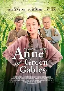 L.M. Montgomery's Anne of Green Gables is a Canadian television film based on Lucy Maud Montgomery's 1908 novel of the same name. It first aired on YTV on February 15, 2016 and starred Ella Ballentine, Martin Sheen and Sara Botsford. Montgomery's granddaughter, Kate Macdonald Butler, was one of the film's executive producers.[1] The film's world premiere was held February 2, 2016 at the Canadian Museum of History.[2][3]