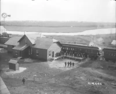 In November, the construction headquarters moved from Gladstone to Dauphin,[17] and work ceased for the season when the 163-kilometre (101 mi) line reached its temporary terminus at Sifton (which activated the federal transportation contract).[18][19] The destination is sometimes mistakenly reported as Dauphin, an alternative projection.[20][21] Government inspection and the handover to the LMR occurred in December.[22] That month, David Blyth Hanna was appointed superintendent, and Theodore Arthur Burrows land commissioner for the railway.[23] Burrows was Clifford Sifton's brother-in-law, as was S. Jacks, who was later appointed as Mackenzie and Mann's purchasing agent.[24]
