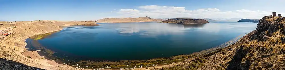 Lake Umayo (Spanish: Laguna Umayo) is a lake in Atuncolla District of the Puno Region of Peru. The Sillustani burial ground is near the shores of the lake. The lake is located at an elevation of 3,844 metres (12,612 ft) and is about 8 kilometres (5.0 mi) long and 3 kilometres (1.9 mi) wide.[1]