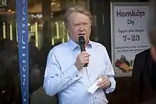 ![]() Lars Adaktusson delivering a speech before the Swedish European Parliament election in May 2014 | |