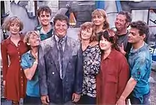 The writers of the series, Andrew Norriss and Richard Fegen, decided to make series five the final one. Thus Brittas was 'killed' by a falling water tank. However, he is brought back to life in bizarre circumstances and Chris Barrie returns to play Brittas for a further two series, as the B.B.C wanted it to continue. New writers were brought on to replace the series' creators; the actual ending was in 1997, when Brittas, at the end of series seven, wakes up on a train heading for Whitsbury. According to this ending, the entire series was a dream.[3]