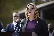Hackett resigned in 2015 and Krueger won the special election to fill the remainder of his term in August 2015.[4][5] She was sworn in on August 25.[6] She was reelected in 2016 and in 2018.[7] Krueger currently sits on the Appropriations, Environmental Resources & Energy, and Labor & Industry committees.[8]