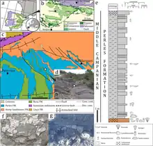 Map of the Cal Torrades Locality and stratigraphy of the Perles formation
