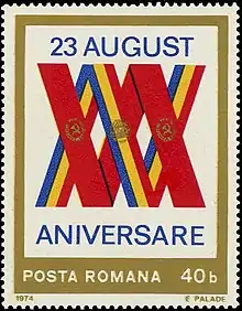 Liberation Day, officially known as the Liberation from Fascist Occupation Day (Romanian: Ziua eliberării de ocupația fascistă) was observed on 23 August in Communist Romania to celebrate the 1944 Romanian coup d'état, the event that caused Romania to leave the Axis in World War II and marked the beginning of the Soviet occupation of Romania (styled by the regime as "liberation"). It coincides with the European Day of Remembrance for Victims of Stalinism and Nazism.
