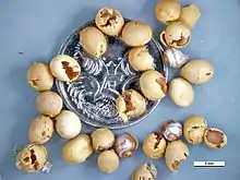 These snails are used by some practitioners of Candomblé for religious purposes in Brazil as an offering to the deity Oxalá. The snails substitute for a closely related species, the West African giant snail (Archachatina marginata) normally offered in Nigeria. The two species are similar enough in appearance to satisfy religious authorities.[36] They are also edible if cooked properly.[37] In Taiwan, this species is used in the dish of 炒螺肉 (fried snail meat), which is a delicacy among the traditional drinking snacks. L. fulica also constitutes the predominant land snail found in Chinese markets, and larger species have potential as small, efficient livestock.[38]