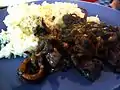 everywhere | fish dish | calamari cooked in their own ink, often served with rice |