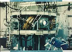 | TFTR (Tokamak Fusion Test Reactor)[10] | Shut down | 1980–1982 | 1982–1997 | Princeton Plasma Physics Laboratory | 2.4 m/0.8 m | 5.9 T | 3 MA | Attempted scientific break-even, reached record fusion power of 10.7 MW and temperature of 510 MK | ![]() | |