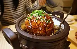 - Stewed meatball – also known as Lion's Head, it is a dish from the Huaiyang cuisine of eastern China, consisting of large pork meatballs stewed with vegetables. There are two varieties: white (or plain), and red (红烧, cooked with soy sauce).