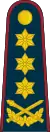 | Generolas | Generolas leitenantas | Generolas majoras | Brigados generolas | Pulkininkas | Pulkininkas leitenantas | Majoras | Kapitonas | Vyresnysis leitenantas | Leitenantas | Kariūnas | ||||||||||||||||||||||||||