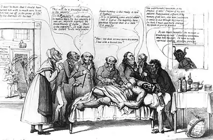 The Whigs quickly seized upon the name, applying an alternate derivation of Loco Foco, from the combination of the Spanish word loco, meaning mad or crack-brained, and foco, from "focus" or fuego meaning "fire".[12] Their meaning then was that the faction and later the entire Democratic party, was the "focus of folly".[13] The use of Locofoco as a derogatory name for the Democratic party continued well into the 1850s, even following the dissolution of the Whig Party and the formation of the Republican Party by former urban Workingmen Locofocos, anti-slavery Know Nothings, Free Soilers, Conscience Whigs, and Temperance Whigs.[14][15][16]