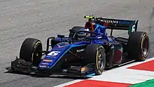 After receiving the backing of Formula One team Williams, Sargeant made his Formula 2 debut in the penultimate round of the 2021 season with HWA Racelab.[25] He finished the first race in 16th, retired in the second sprint due to a mechanical problem, and ended the aborted feature race in 14th position.