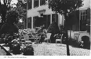The Groton campus included 17 acres (69,000 m2) of meadows, orchards, gardens, greenhouses, and an administration building.[2][3] The gardens were largely the work of school students and were mostly laid out in geometrical arrangements; the herb garden, for example, was in the form of an Elizabethan knot. Although the naturalistic style of Edwardian-era English garden design (embracing both the English landscape garden and its later variant the cottage garden) was the prevailing aesthetic taught at the school, the more formal style of Italian landscape design was also taught and influenced how the gardens were organized.[4]