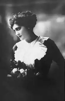 When she moved to Berlin in 1908 she married Walter Gérard, a German scientist of Huguenot extraction, with whom she had two sons: the set and costume designer and painter Rolf Gérard[4] and Charles E. (Horst) Gérard. Recent research has disproved claims that she was the mistress of Adolphus Frederick VI, Grand Duke of Mecklenburg-Strelitz from 1908 until his suicide in 1918 and that her two sons were illegitimate children of the Grand Duke. In 1933 she married Jurgis Šaulys, the Lithuanian Ambassador to Germany. At the outbreak of World War II they moved to Lugano in the Swiss canton of Ticino, where she died in 1971 at the age of 84.[1]