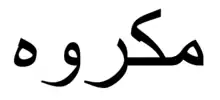 In Islamic terminology, something which is makruh or makrooh (Arabic: مكروه, transliterated: makrooh or makrūh) is a "disliked" (literally "detestable" or "abominable"[1]). This is one of the five categories (al-ahkam al-khamsa) in Islamic law – wajib/fard (obligatory), Mustahabb/mandub (recommended), mubah (neutral), makruh (disapproved), haram (forbidden).[2]