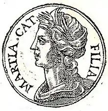 Marcia (also Marzia or Martia) was the second wife of Marcus Porcius Cato Uticensis (Cato the Younger) and the daughter of Lucius Marcius Philippus.