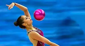 - ↑ FIG Channel. 2013 Rhythmic Gymnastics World Championships – Hoop and Ball Finals. Event occurs at 639seconds. Retrieved 22 August 2018.