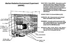 The Martian Radiation Experiment, or MARIE was designed to measure the radiation environment of Mars using an energetic particle spectrometer as part of the science mission of the 2001 Mars Odyssey spacecraft (launched on April 7, 2001). It was led by NASA's Johnson Space Center and the science investigation was designed to characterize aspects of the radiation environment both on the way to Mars and while it was in the Martian orbit.[1]