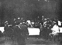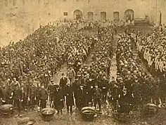 ![]() Albanian civilians taken prisoner in Pristina during massacres by the Serbian army in 1912 | |