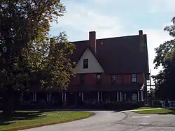McCoy House, also known as the AuClaire School and Gingerbread House, is a historic home located at Kirkwood, New Castle County, Delaware. It was built between 1892 and 1897, and is a 28-room, 2+1⁄2-story, six-bay, brick house. It features a wraparound verandah, steep gable roof, and is covered in brown glazed tiles imported from Belgium. It is considered one of the most unusual structures in the State of Delaware and reflects the builder's unique expression of the European Arts and Crafts movement.[2]