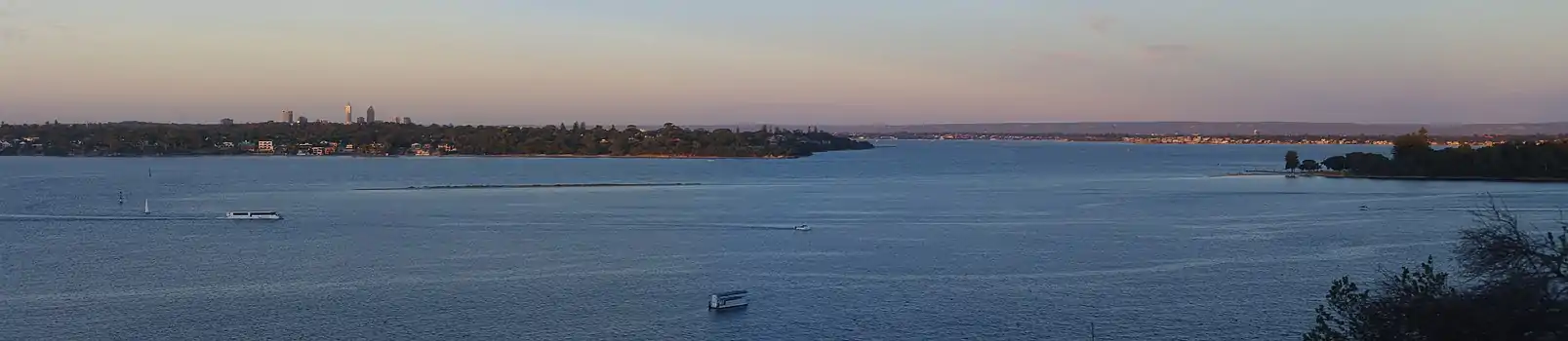 Melville Water lies between Point Resolution and Point Walter to the west, Point Heathcote at the mouth of the Canning River to the south-east, and the Narrows Bridge where it meets Perth Water to the north-east. In that space it has marine parks (Swan Estuary marine park in Lucky Bay and Alfred Cove), water ski areas (Waylen Bay, and Point Walter) as well as the Narrows Personal Water Craft Freestyle Area.[3] The main ferry and tour boat route passes through the centre of the open water in the centre of the river.[4]
