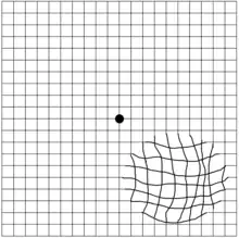 Metamorphopsia can be a symptom of a number of eye disorders involving the retina or macula.[7] Some of these conditions include the following: