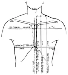- Lateral sternal line: A vertical line corresponding to the lateral margin of the sternum.