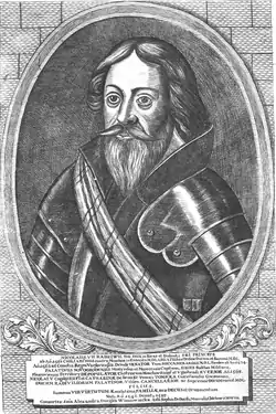 Mikołaj Radziwiłł, Lithuanian: Mykalojus Radvila also known as Mikołaj Radziwiłł The Seventh (1546–1589) was Reichsfürst of the Holy Roman Empire and a Polish–Lithuanian noble (szlachcic), Great Chamberlain of Lithuania in the Grand Duchy of Lithuania and later in Polish–Lithuanian Commonwealth. Voivode of Nowogródek Voivodeship, starost mozyryski and merecki. Member of the Radziwiłł family. He was a Calvinist.