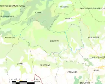 Minerve (French pronunciation: [minɛʁv] ; ⓘOccitan: Menèrba) is a commune in the Hérault department in the Occitanie region in southern France. It is the namesake of the Minervois wine region.