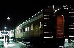 The freight house served a large percentage of less-than-carload freight arriving and departing from the Minneapolis area. Passenger traffic was also significant. In 1916, 15 passenger trains per day used the depot. Later years included the flagship Hiawathas. Rail yard facilities just south of downtown, on Hiawatha Avenue north of Lake Street, serviced the trains.[2] By 1920, the peak of activity, 29 trains per day used the depot.[4] Into the 1960s, the Chicago, Rock Island and Pacific Railroad (or Rock Island) operated the Twin Star Rocket bound for Houston, via Des Moines and Dallas from the station.