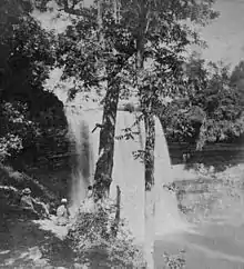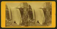 Minne-ha-ha by Benjamin Franklin Upton. This stereoscopic view card is probably one of the photos in Upton's Collection of Photographic Views published in 1865 while he was living in Minneapolis.[9]