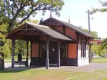 The park preserves historic sites that illustrate transportation, pioneering, and architectural themes. Preserved structures include the Minnehaha Princess Station, a Victorian train depot built in the 1870s; the John H. Stevens House, built in 1849 and moved to the park from its original location in 1896, utilizing horses and 10,000 school children; and the Longfellow House, a house built to resemble the Henry Wadsworth Longfellow's house in Cambridge, Massachusetts. The park was listed on the National Register of Historic Places in 1969 as the Minnehaha Historic District[1] in recognition of its state-level significance in architecture, commerce, conservation, literature, transportation, and urban planning.[2]