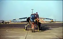 The Mirage F1 emerged from a series of design studies performed by French aircraft manufacturer Dassault Aviation.[2] Having originally sought to develop a larger swept wing derivative of the Mirage III, which became the Mirage F2, to serve as a vertical take-off and landing (VTOL) propulsion testbed akin to the Dassault Mirage IIIV, however, it was soon recognized that the emerging design could function as the basis for a competent fighter as well. Both the Mirage F2 and a smaller derivative, referred to the Mirage F3, received substantial attention from both Dassault and the French Air Force, the latter being interested in its adoption as a long-range fighter bomber as a stopgap measure prior to the adoption of the envisioned Anglo-French Variable Geometry (AFVG) strike aircraft.[2]