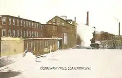The Monadnock Mills are a historic mill complex in Claremont, New Hampshire. They extend along the southern bank of the Sugar River on both sides of Water Street, between the Broad Street bridge to the east, and the junction of Main and Water Streets in the west, where they abut the industrial area formerly associated with the Sullivan Machinery Company; there also a small number of surviving elements on the north side of the river opposite this area. The complex represents the surviving elements of what was once the largest manufacturing complex in the upper Connecticut River watershed area, and one of its oldest. The mills were listed on the National Register of Historic Places in 1979.[1] Many of its buildings have been repurposed to other uses.